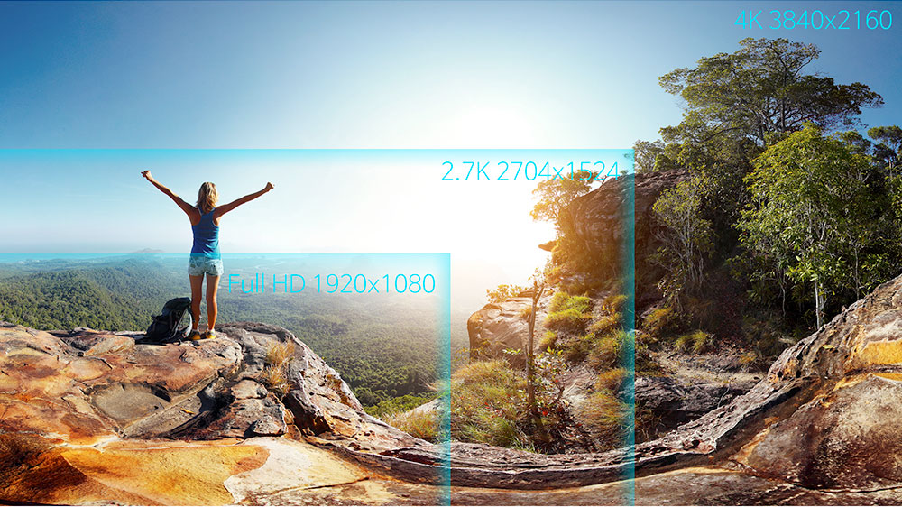 4K, 2.7K en Full HD 60fps opnemen Wanneer je in FullHD 60fps opneemt, zijn zelfs de snelste bewegingen vloeiend, dus wanneer je jouw actie sporten filmt blijf je geweldige kwaliteit video’s krijgen. 4K en 2.7K resoluties worden ook ondersteund (10fps) voor het opnemen in Ultra HD. Perfect voor video’s zonder snelle bewegingen en zorgt voor opnames met 4 keer hogere resolutie dan FullHD.